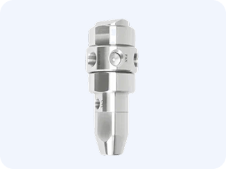 Пневматические атомайзеры с внешним смешиванием подходят для жидкостей с вязкостью более 200 сП. Потоки воздуха и жидкости выходят из сопла независимо через каждое отверстие, что обеспечивает точное дозирование жидкости. Этот метод лучше всего подходит для вязких материалов, таких как масла, покрытия, смазочные материалы, меласса, жиры.