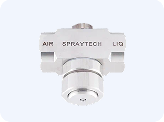 Пневматические атомайзеры с внешним смешиванием подходят для жидкостей с вязкостью более 200 сП. Потоки воздуха и жидкости выходят из сопла независимо через каждое отверстие, что обеспечивает точное дозирование жидкости. Этот метод лучше всего подходит для вязких материалов, таких как масла, покрытия, смазочные материалы, меласса, жиры.