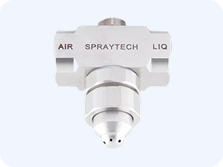 Пневматические атомайзеры с внешним смешиванием подходят для жидкостей с вязкостью более 200 сП. Потоки воздуха и жидкости выходят из сопла независимо через каждое отверстие, что обеспечивает точное дозирование жидкости. Этот метод лучше всего подходит для вязких материалов, таких как масла, покрытия, смазочные материалы, меласса, жиры.