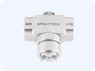 Пневматические атомайзеры с внешним смешиванием подходят для жидкостей с вязкостью более 200 сП. Потоки воздуха и жидкости выходят из сопла независимо через каждое отверстие, что обеспечивает точное дозирование жидкости. Этот метод лучше всего подходит для вязких материалов, таких как масла, покрытия, смазочные материалы, меласса, жиры.