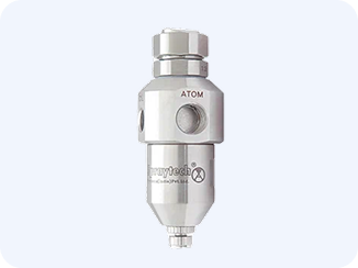 Изменяя давление воздуха, можно изменить форму и интенсивность распыла, не влияя на давление жидкости. Усовершенствованная форсунка для распыления воздуха SAM расширяет этот контроль, предлагая два отдельных источника воздуха: один контролирует форму распыления, а другой — распыление. Дальнейшего уровня контроля можно достичь, используя подачу воздуха для быстрого прекращения распыления. При подключении к подходящей системе управления форсунки воздушного распыления могут быстро включаться и выключаться много раз в секунду.