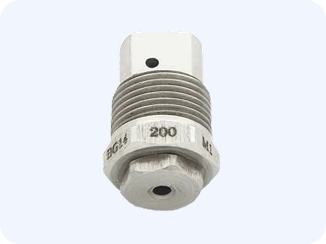 При подаче жидкости соосно с направлением распыла такие дюзы дают мелкую каплю с углами разбрызгивания от 60 до 90 градусов. Угловые распылители полого факела имеют большие проходные сечения и не склонны к засорению.
